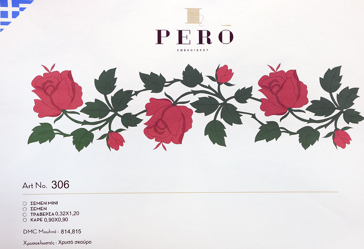 Κέντημα πολύχρωμο τραβέρσα 32X120cm σε σχέδιο Τριαντάφυλλα της εταιρίας Pero