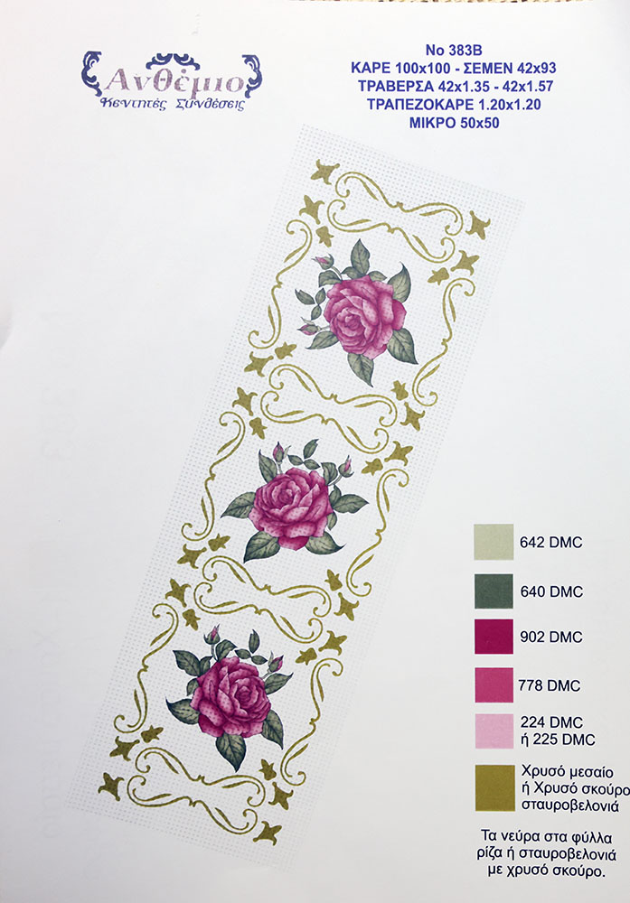 Κέντημα πολύχρωμο τραβέρσα 42X135cm σε σχέδιο Τριαντάφυλλα της εταιρίας Ανθέμιο