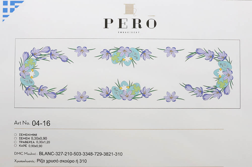 Κέντημα τραβέρσα 50Χ130cm με σχέδιο Πασχαλινό - Αυγό και Λουλούδια της εταιρείας Pero
