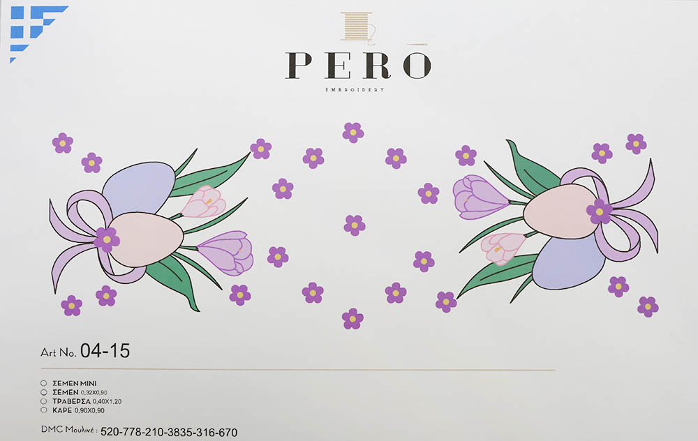 Κέντημα τραβέρσα 50Χ130cm με σχέδιο Πασχαλινό - Αυγό και Λουλούδια της εταιρείας Pero