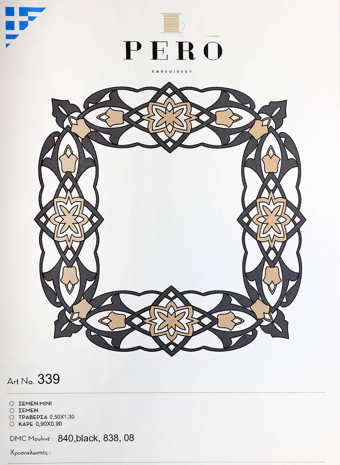 Κέντημα καρέ 90Χ90cm με σχέδιο άνθη της εταιρίας Pero